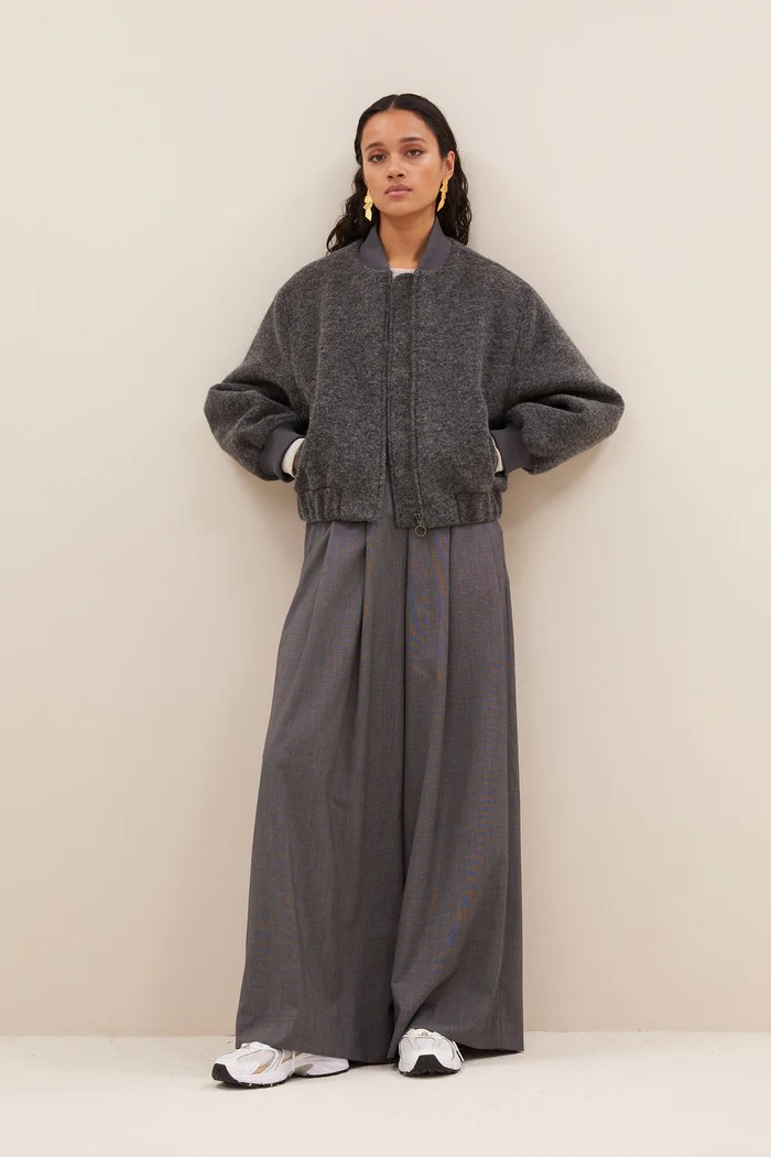 Blouson zipé coupe bombers. Une veste polyvalente pour tous les jours confectionnée dans un mélange de laine.